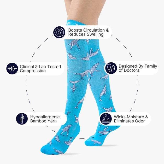 Compression socks originally designed by a family of doctors. Boost circulation, prevent swelling & DVT, and support all-day energy with fun designs.