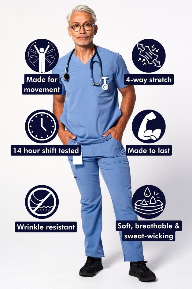 Classic straight-cut cargo scrub pants with a zipper fly, drawstring waist and our famous softer-than-pyjamas performance fabric. Oh yeah, they've also got NINE pockets. Yup, nine!