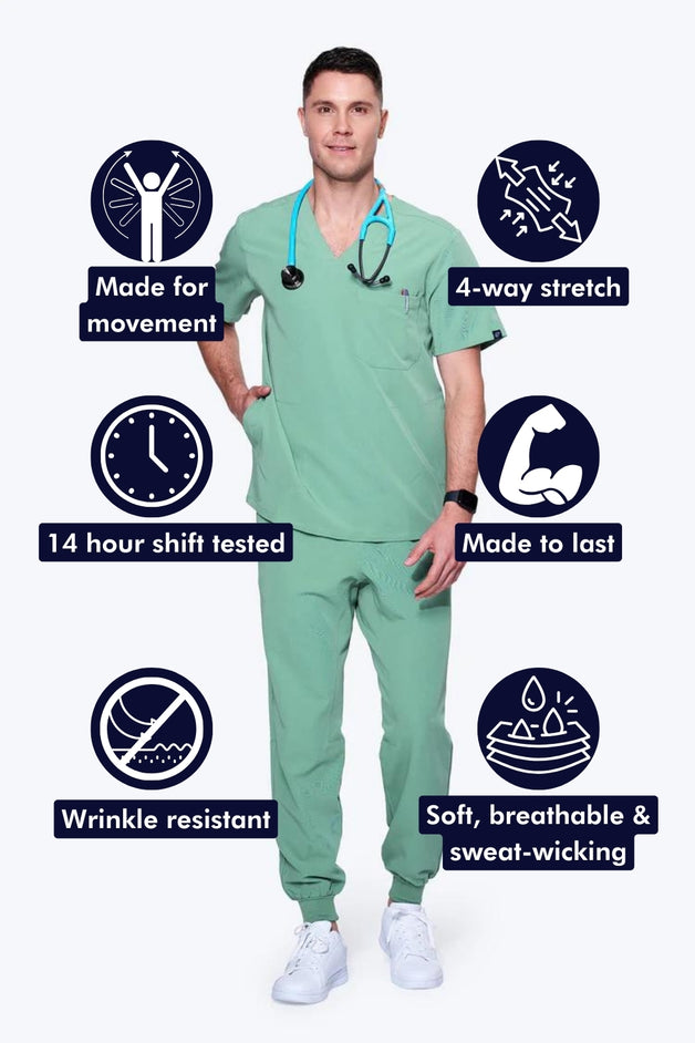 A soft, breathable & sweat-wicking scrub top made for movement and comfort.