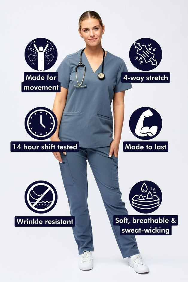 Classic slim-cut scrub pants with a semi-elastic drawstring waist and our famous softer-than-pyjamas performance fabric. Oh yeah, they've also got eleven pockets. Yup, eleven!