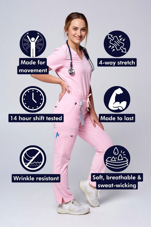 Classic slim-cut scrub pants with a semi-elastic drawstring waist and our famous softer-than-pyjamas performance fabric. Oh yeah, they've also got eleven pockets. Yup, eleven!