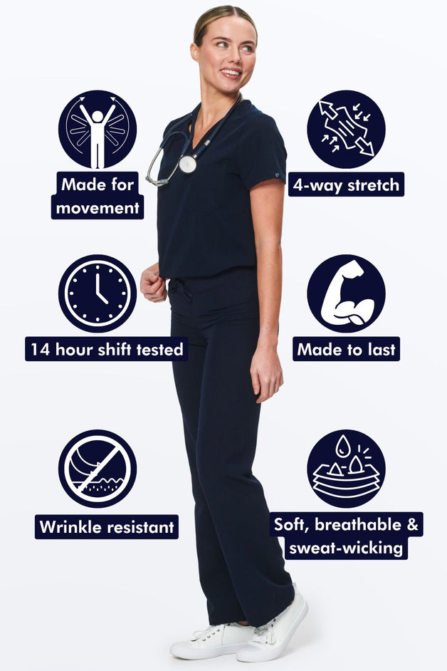 We'd suggest sizing up. Among the small group of customers that exchange their scrubs, the majority swap for a larger size.