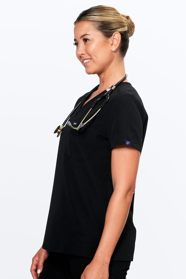 Our V-Neck Tuck Top is soft, sweat-wicking and oh-so-comfy. You’ll love the:
