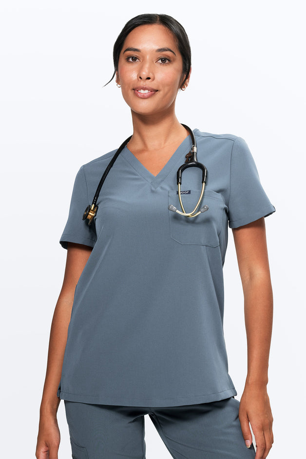 Our V-Neck Tuck Top is soft, sweat-wicking and oh-so-comfy. You’ll love the: