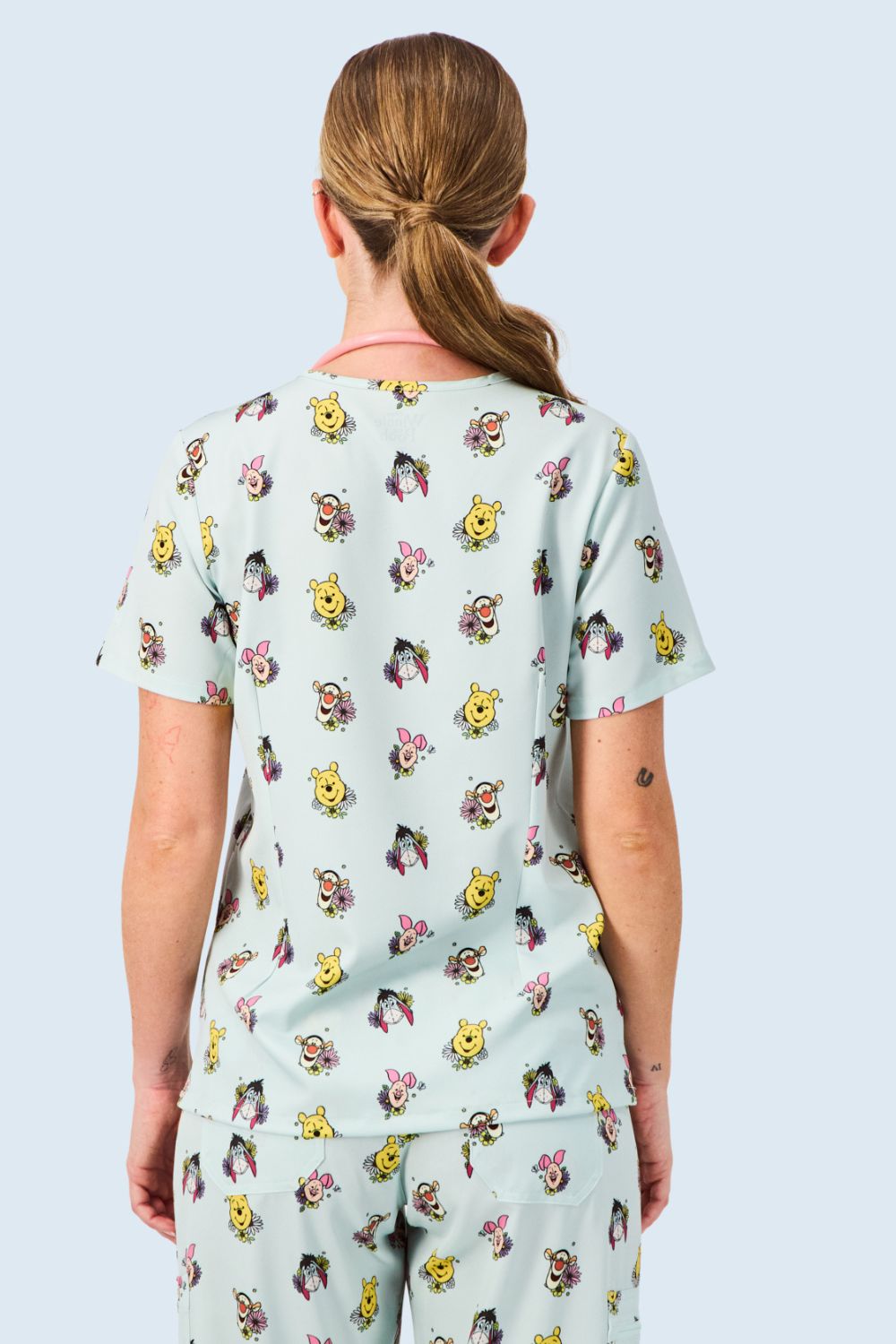Bring Disney’s Winnie the Pooh, Eeyore, Piglet and Tigger to work with you. This breathable, sweat-wicking scrub top is made for movement and comfort.