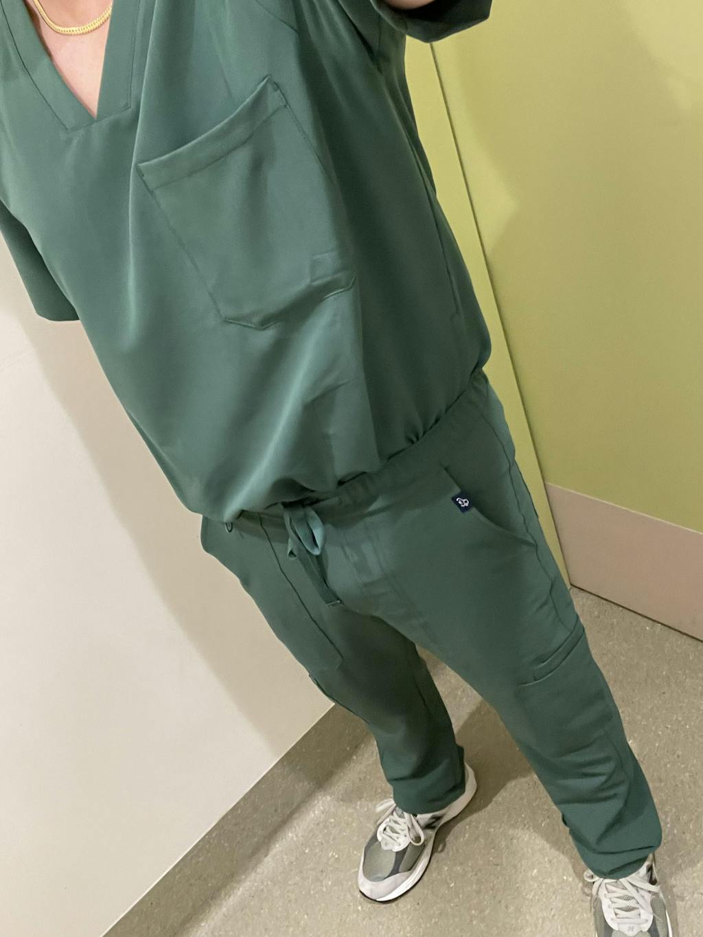 Classic jogger style scrub pants with an elastic waistband and adjustable drawstring.