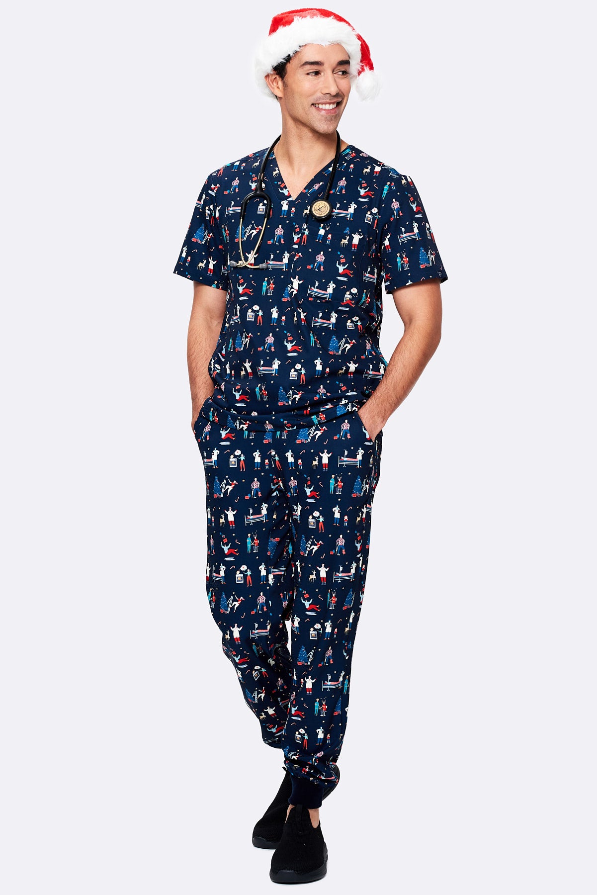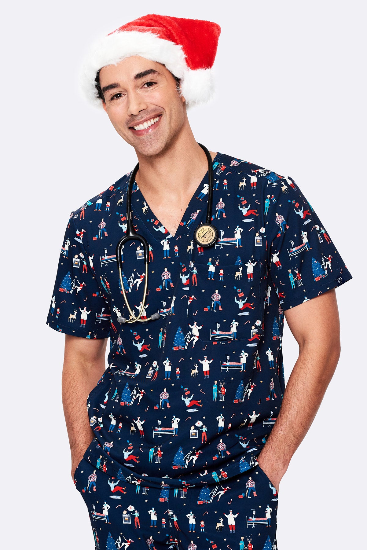 Christmas Chaos Men’s 3-Pocket Scrub Top