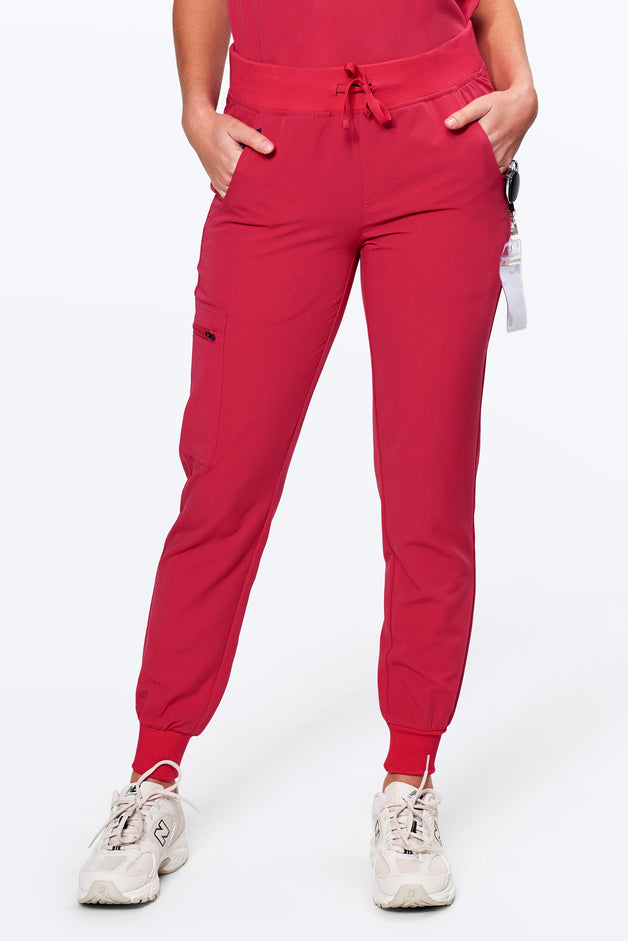 Classic jogger style scrub pants with an elastic waistband and adjustable drawstring.