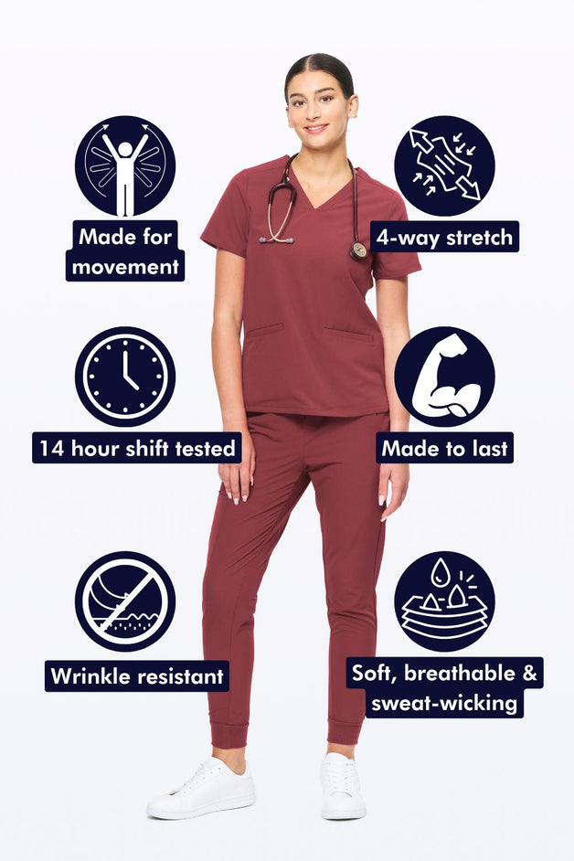 A soft, breathable & sweat-wicking scrub top made for movement and comfort.