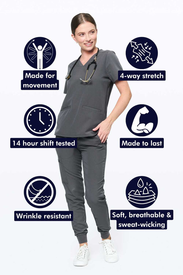 A soft, breathable & sweat-wicking scrub top made for movement and comfort.