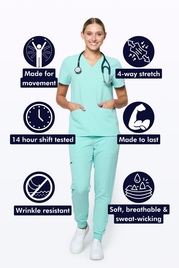 A soft, breathable & sweat-wicking scrub top made for movement and comfort.