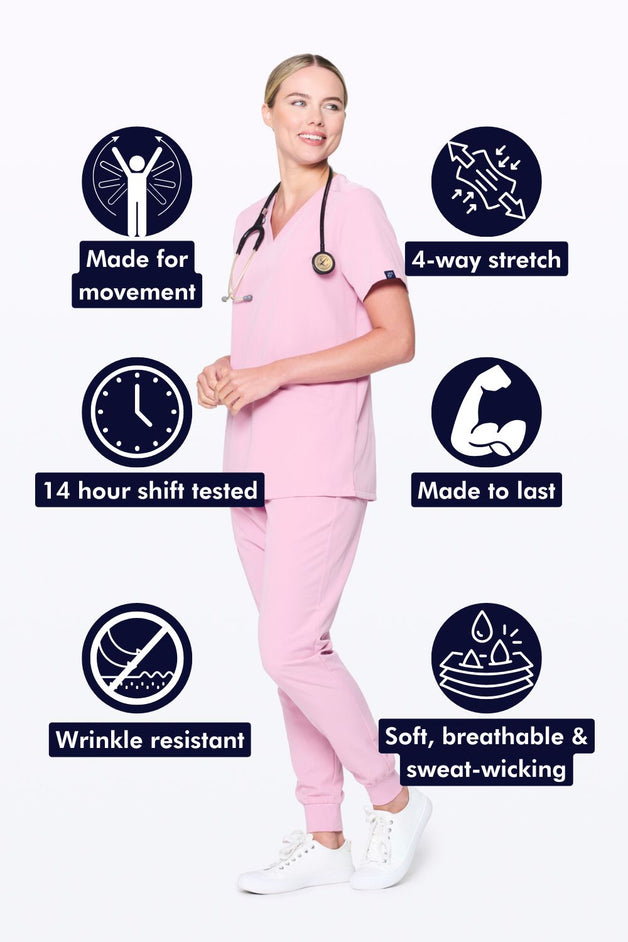 A soft, breathable & sweat-wicking scrub top made for movement and comfort.