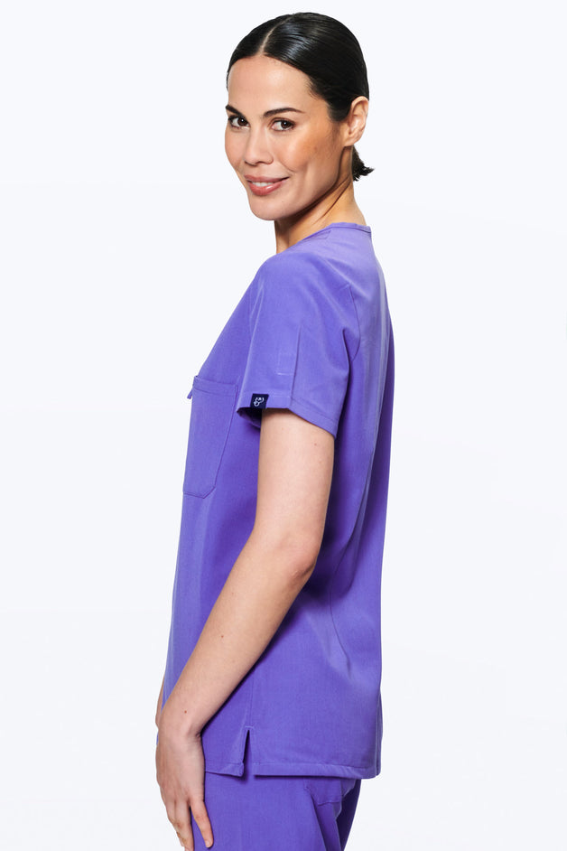 We'd suggest sizing up. Among the small group of customers that exchange their scrubs, the majority swap for a larger size.